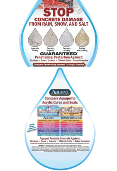 Aquapel is a new generation, 100% reactive, waterborne sealer. Ideal for use on interior and exterior, above grade, traffic bearing concrete. It penetrates concrete surfaces and chemically bonds directly with the substrate which results in a surface that is highly resistant to the attacks of both moisture and salt.
